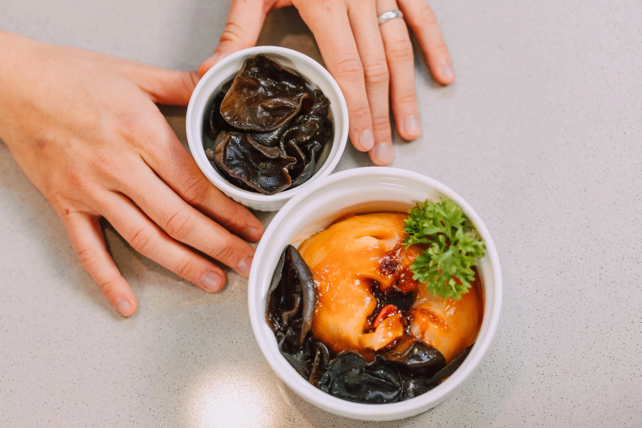Ajoutez des champignons noirs réhydratés dans des salades pour une texture croquante et une saveur délicate.